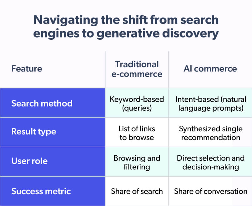 - Marketing teams: Can move from technical “keyword hoarding” and technical SEO hacking toward deep contextual relevance that answers natural-language shopper questions.