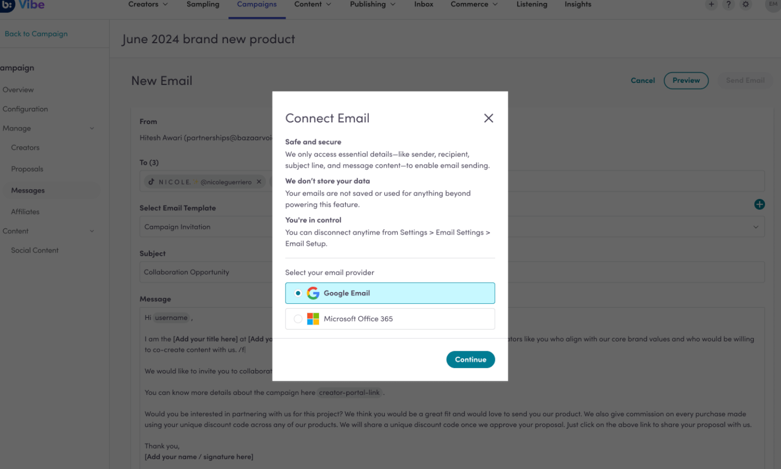 Increase creator response rates by integrating your Gmail or Outlook email address